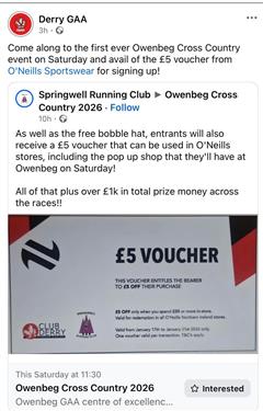 Hi All, this is just information for a new cross country event being held at Owenbeg this Saturday. We have great runners at Hollybush so it's an opportunity for them to compete against the rest of the county. They event has a great connection with the city as you see in the article. The link is attached also to help anyone interested in registering their child. Hopefully this will work out for some children. Thank you